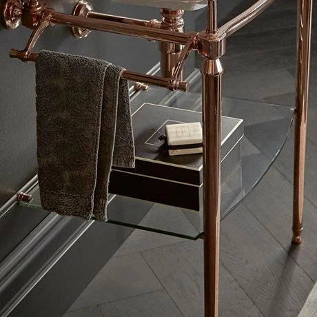This elegant glass shelf is an optional add-on for the Abingdon Blenheim washstand and provides a practical storage solution for toiletries or clean towels. Manufactured from high quality materials and comes finished in Vintage Gold.